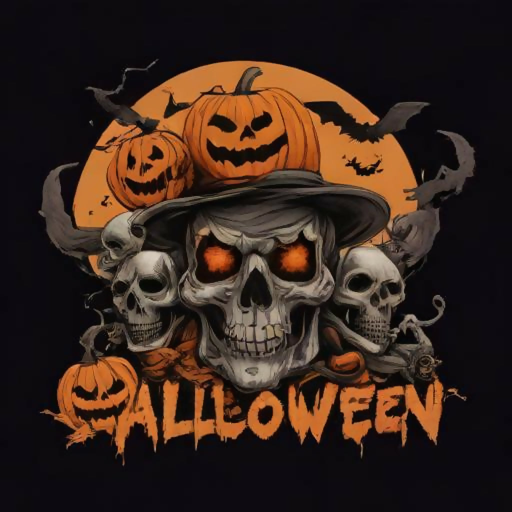 bold retro Halloween skull design with glowing red eyes, spooky moon, jack-o’-lantern, and dripping letters. Perfect for Halloween t-shirts, hoodies, posters, and party décor. Add a creepy yet playful vibe to your style this spooky season!