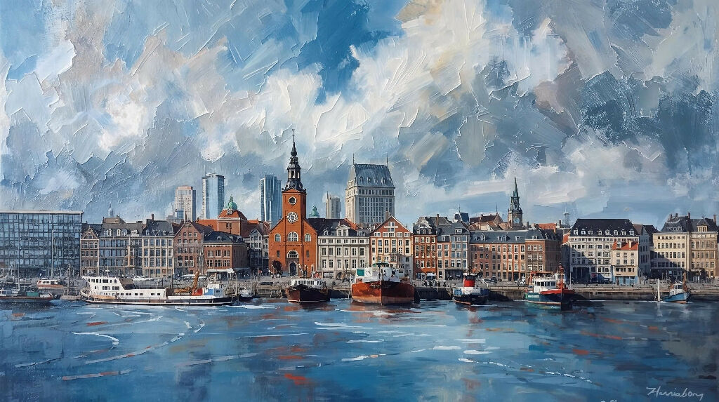 Another abstract painting of Hamburg revealing it's old-world charm.