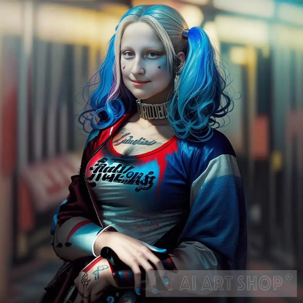 Dive into a riotous fusion of classic art and chaotic charm as Mona Lisa transforms into the enigmatic Harley Quinn. With a playful twist on Da Vinci's masterpiece, this AI-crafted creation captures the essence of rebellion and mischief. Mona Lisa's enigmatic smile now wears a mischievous grin, blending timeless artistry with the irreverent spirit of Gotham's infamous anti-heroine.