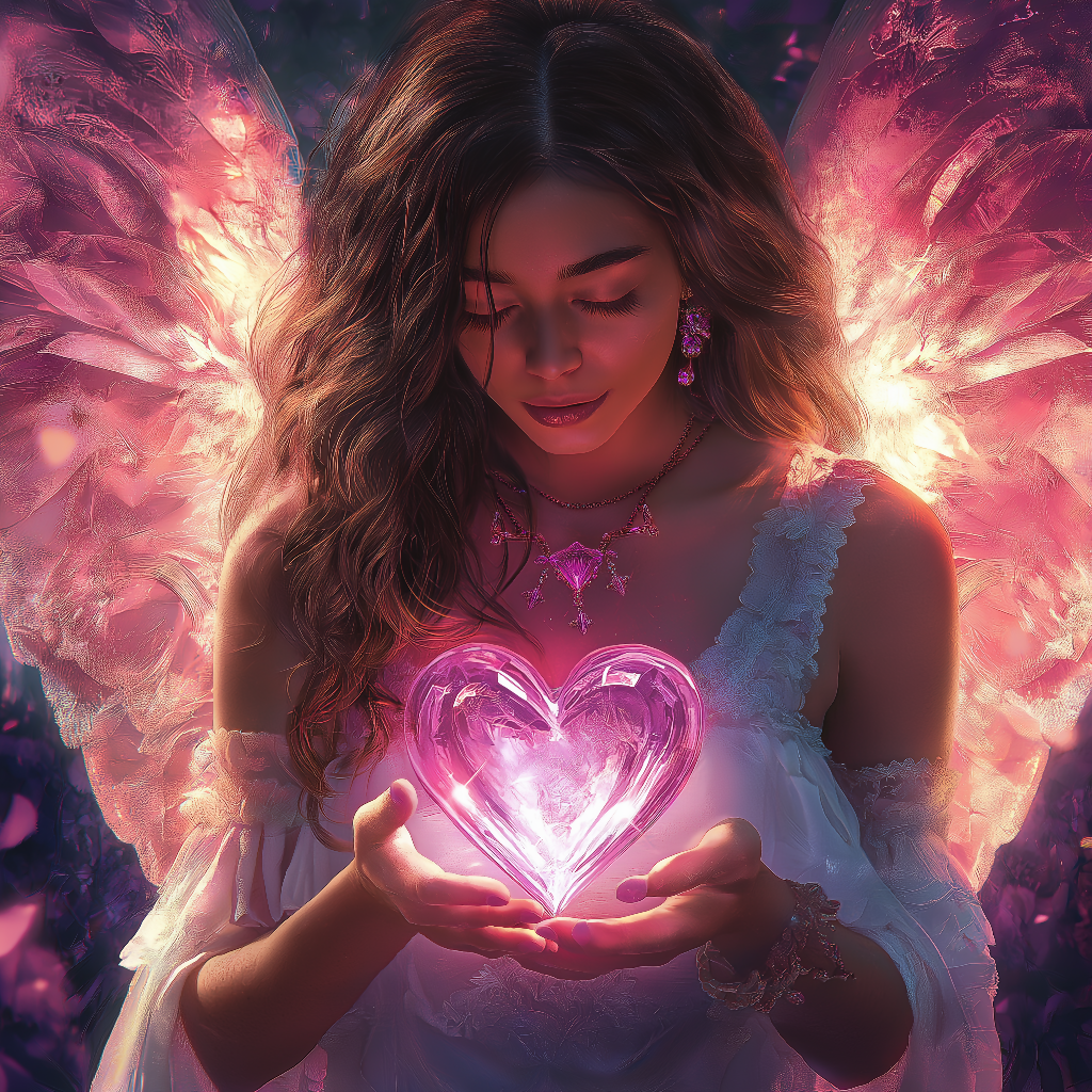 Step into a realm of radiant beauty and eternal love with this mesmerizing AI-crafted masterpiece. The Valentine Gemstone Goddess emerges, adorned in a dazzling array of shimmering gemstones—each symbolizing facets of passion, devotion, and tenderness. Her ethereal form glows with hues of ruby red, rose quartz pink, and diamond white, reflecting the light of an eternal bond. Intricate patterns of crystalline filigree cascade from her gown, merging nature's elegance with divine artistry.