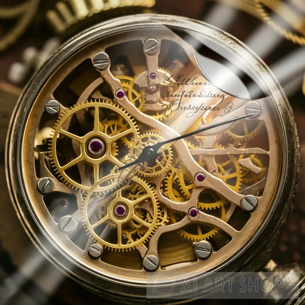 Unveiling the intricate dance of time, a pocket watch lays bare its soul. Gears and cogs mesh in perfect harmony, bathed in the warm glow of a magnifying glass revealing a hidden inscription.