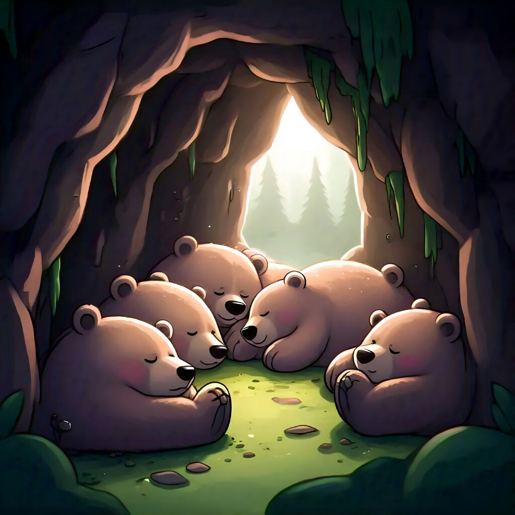 Step into a world of serene wilderness with Hibernate in Harmony, a heartwarming AI-generated illustration that captures five cartoon-style bears nestled together in a mossy cave. As light gently pours in from the forest entrance, the scene evokes a sense of safety, warmth, and familial bonding. Inspired by the quiet magic of hibernation, this artwork tells the story of nature’s rhythm—where rest is sacred and togetherness is instinctual. Perfect for lovers of wildlife, storytelling, and tranquil design, this piece brings a peaceful pause to any space.