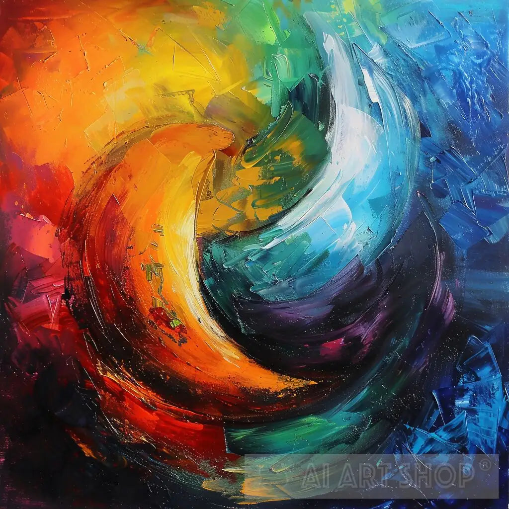 An abstract expressionism painting about hot and cold juxtaposes fiery, intense hues with cool, soothing tones, conveying the emotional contrast and energetic interplay between opposing forces