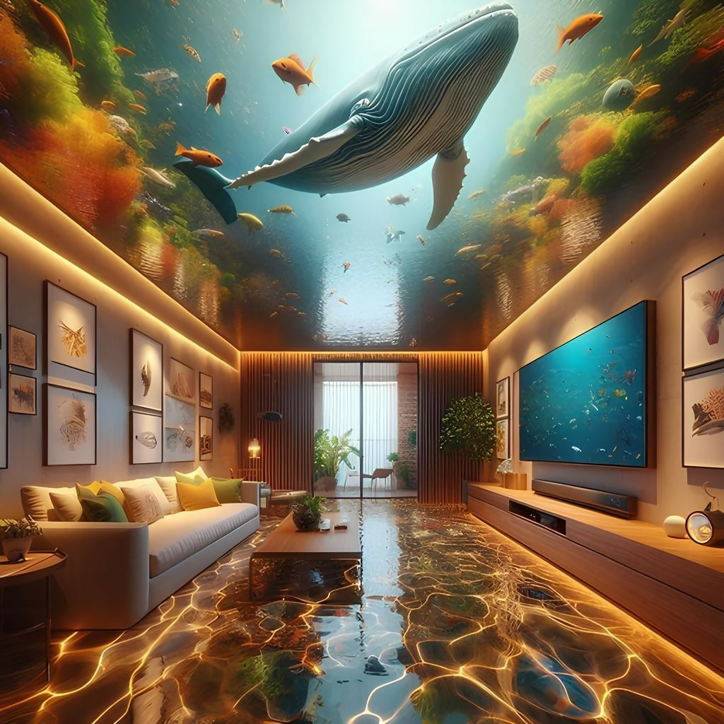 Discover the mystery of the deep with this artistic image of a house beneath the sea. Surrounded by marine life and glowing in the ocean’s blue light, it invites you into a surreal, dreamlike underwater world full of wonder and calm.