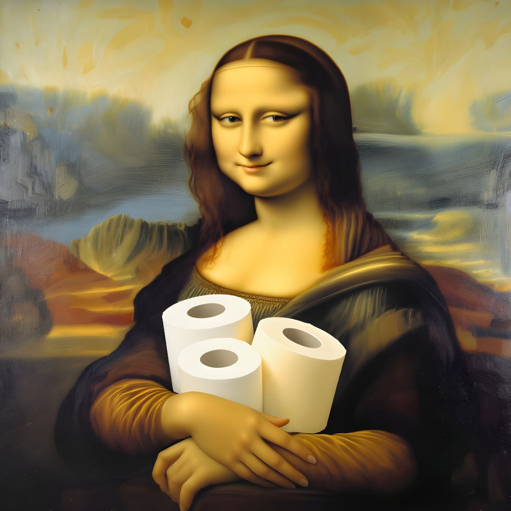 Humorous Mona Lisa with Toilet Paper