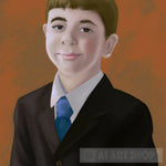 The boy's expression would be captured in intense detail, conveying every emotion and nuance of his personality. His eyes would be particularly striking, with a level of depth and clarity that draws the viewer in. The portrait would capture not just the physical appearance of the boy, but also his inner essence and character.