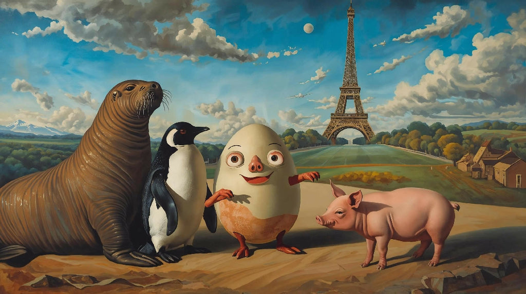 Surreal painting where the lyrics of the Beatles classic I Am the Walrus come to life.