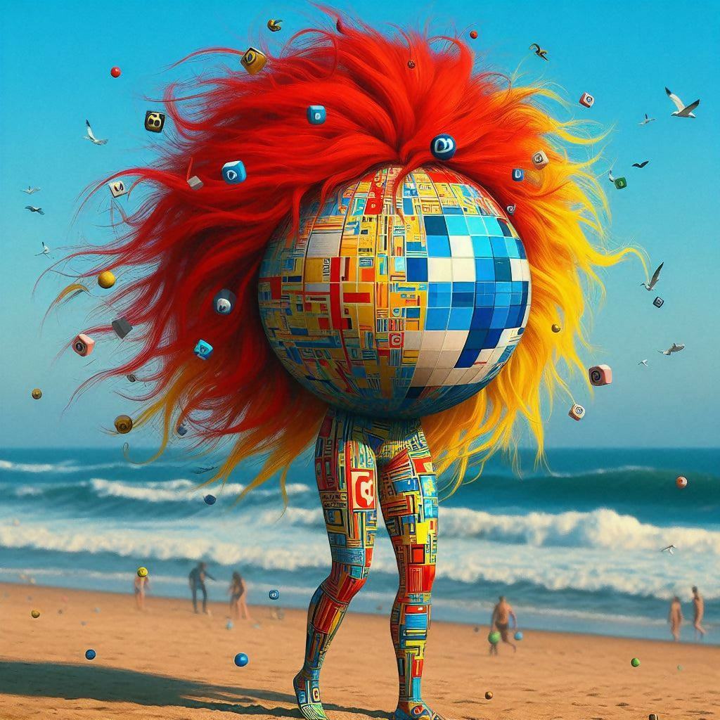 "This piece explores the intersection of digital culture and human identity, where app icons and online presence shape our self-perception. By fusing surrealism with digital elements, I invite viewers to reflect on the chaotic influence of technology and the evolving nature of art in the digital age."