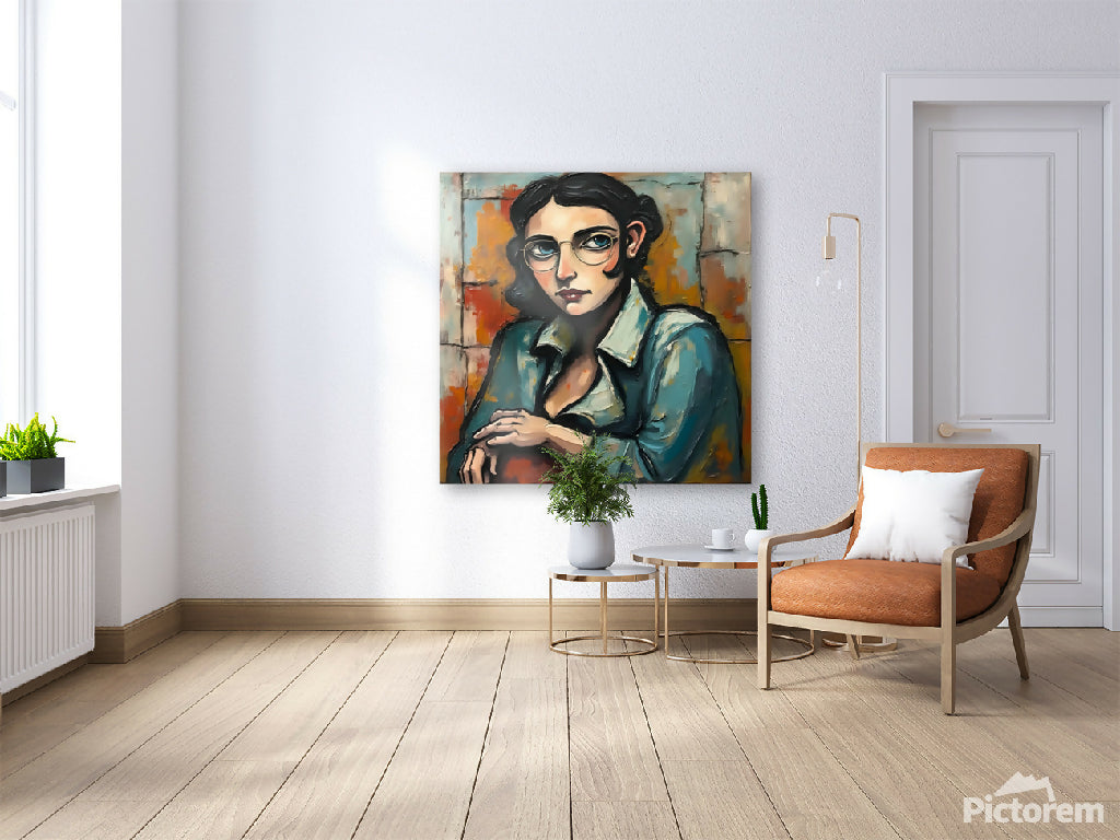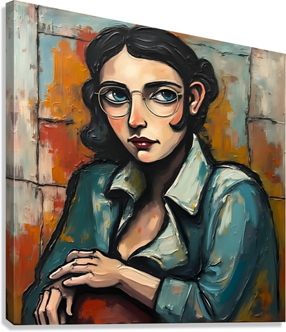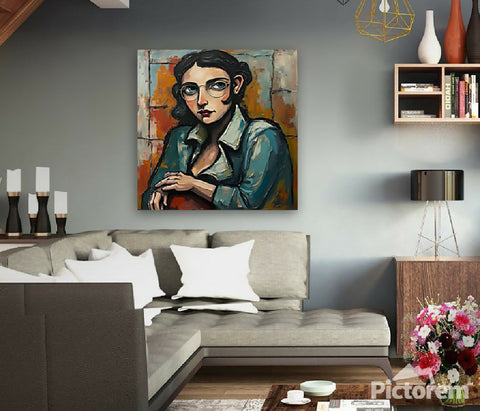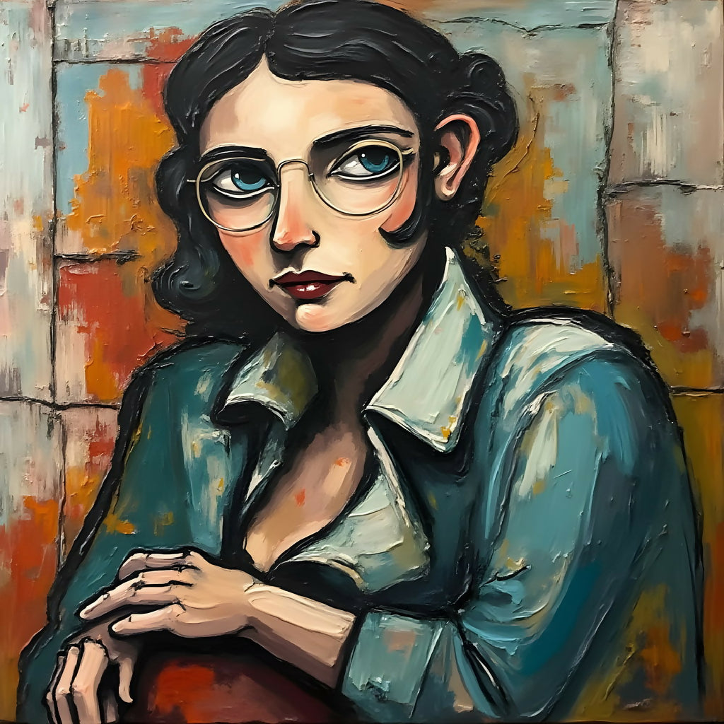 This painting showcases a Cubist-inspired portrait, featuring fragmented forms in earthy tones, with bold brushstrokes reminiscent of early 20th-century avant-garde art.