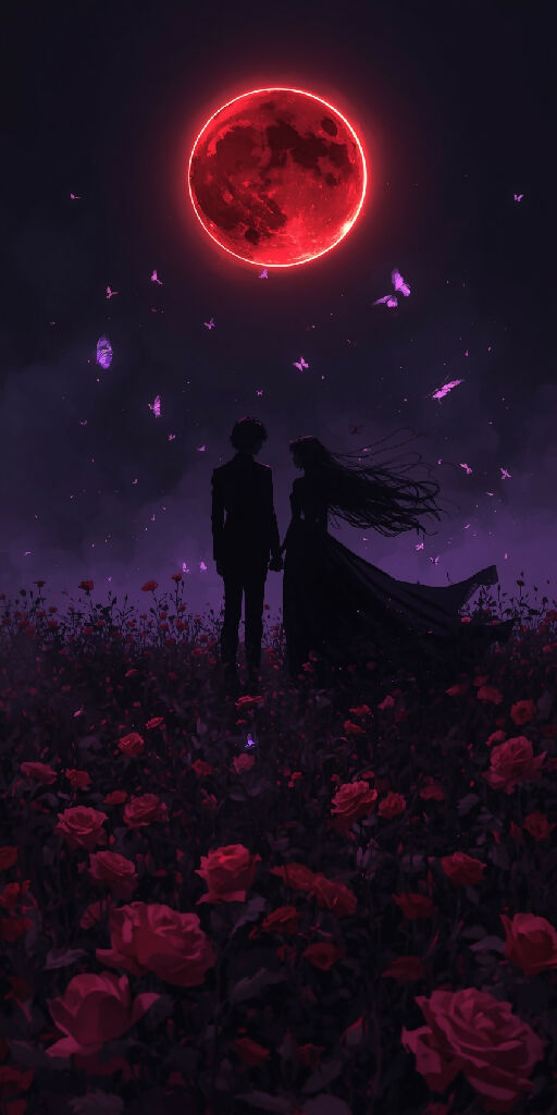 Image anime Beneath the eerie glow of a blood-red lunar eclipse