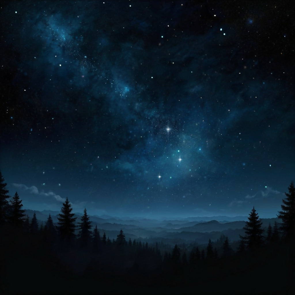 Imagine a dark blue night sky, so vast and endless, with stars scattered like diamonds across its canvas, each one a tiny glimpse into the infinite expanse of the universe
