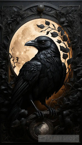 In the dimly lit ambiance of an old tavern, a captivating logo design seamlessly blends the mystique of witchcraft, the allure of a black crow, and the enigmatic allure of the moon. Crafted with intricate detail, the logo portrays a charismatic crow in a style reminiscent of ancient artistry, its feathers etched into rich black leather. Against a backdrop of moonlit shadows, the design exudes a magical aura, tantalizing the viewer's imagination. This immaculate creation, whether a digital artwork or a masterfully executed painting, showcases remarkable craftsmanship and undeniable quality.