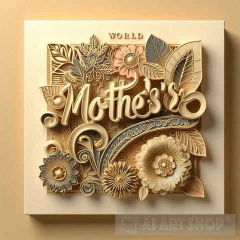 The picture shows an artistic painting with a prominent and delicate design that celebrates International Mother’s Day. The painting is decorated with amazing flowers and plant leaves with fine details and golden and beige colors that give a feeling of luxury and sophistication. In the center of the painting, the text "Mother's" stands out, written in elaborate, ornate script. The design reflects the beauty of nature and celebrates motherhood in an elegant and distinctive way.