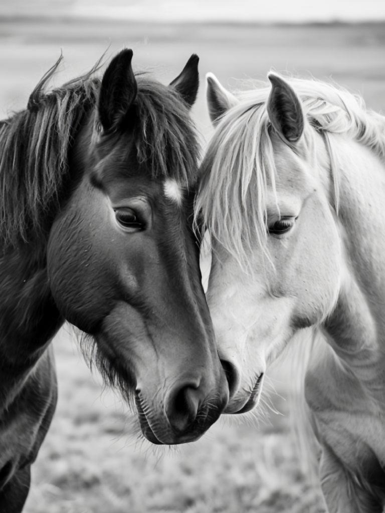 This intimate, high-quality Digital Download captures two affectionate horses nose-to-nose, symbolizing Love and companionship. The timeless Monochrome Photography style makes it a powerful piece of Minimalist Wall Art that complements any decor aesthetic.