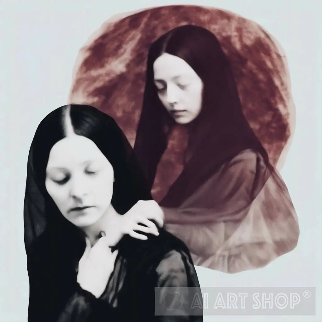 A solitary woman offers heartfelt prayers to her own reflection. Delve into the depths of introspection as the crimson hue envelops the scene, evoking a sense of inner sanctity and personal connection.