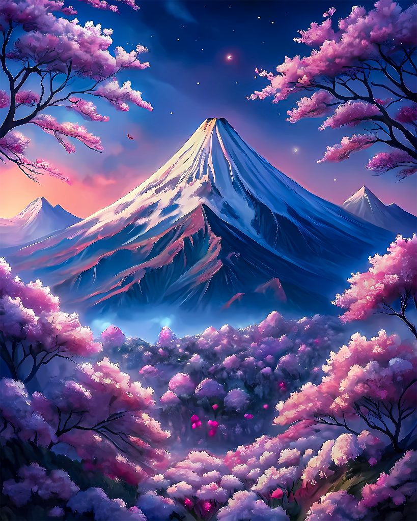 Blossoming Tranquility. Traditional Japanese Landscape with Mount Fuji