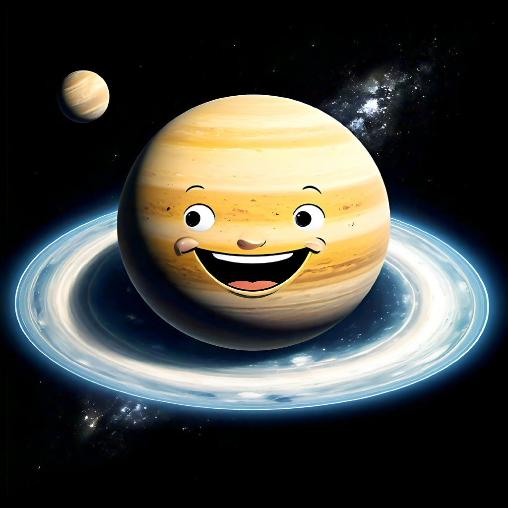 Jovial Jupiter is a delightful, whimsical AI-generated space illustration that brings an imaginative twist to the largest planet in our solar system. This artwork showcases Jupiter with expressive eyes and a friendly smile, adding a touch of charm to the celestial scene. Adorned with its iconic swirling clouds and mesmerizing rings, this piece beautifully blends realism with fantasy. The cosmic backdrop, featuring distant planets and radiant stars, enhances the dreamlike quality of this playful depiction. Perfect for space enthusiasts, children’s room decor, and collectors of surreal, character-driven art.