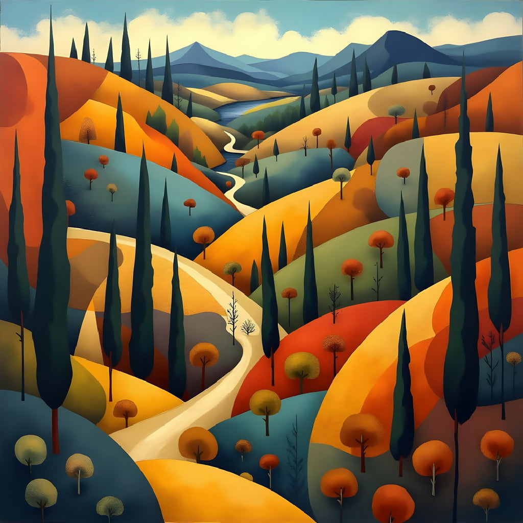 This painting showcases a Cubist-inspired lanscape painting, featuring fragmented forms and multiple viewpoints in earthy tones, with bold brushstrokes reminiscent of early 20th-century avant-garde art.