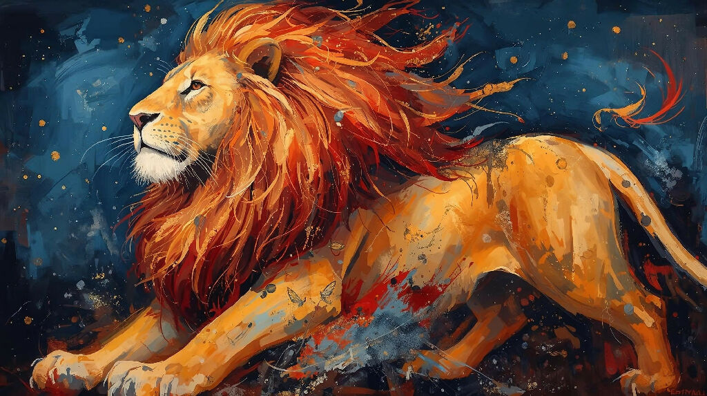 Surreal, dreamy painting of the Zodiac sign Leo.