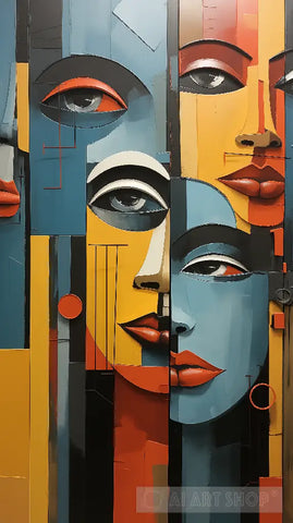 a painting of a group of people with different colored faces, an art deco painting by Elizabeth Murray, behance contest winner, figurativism, art deco, behance hd, cubism