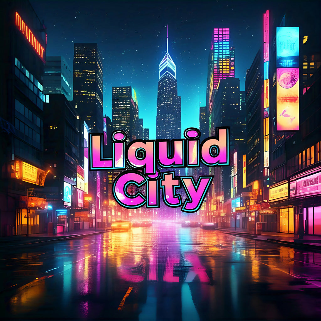 Dive into the electric energy of Liquid Cityscape: Neon Reflections, an evocative AI-generated artwork that captures the pulse of a futuristic metropolis. The scene unfolds beneath a starlit sky, where soaring skyscrapers glow with vibrant neon hues and glossy wet streets shimmer with dazzling reflections. The text "Liquid City" floats amidst the architectural spectacle, adding a conceptual edge to the dreamlike ambiance. This piece weaves modern architecture with a surreal nighttime atmosphere, making it ideal for collectors seeking bold urban expression.