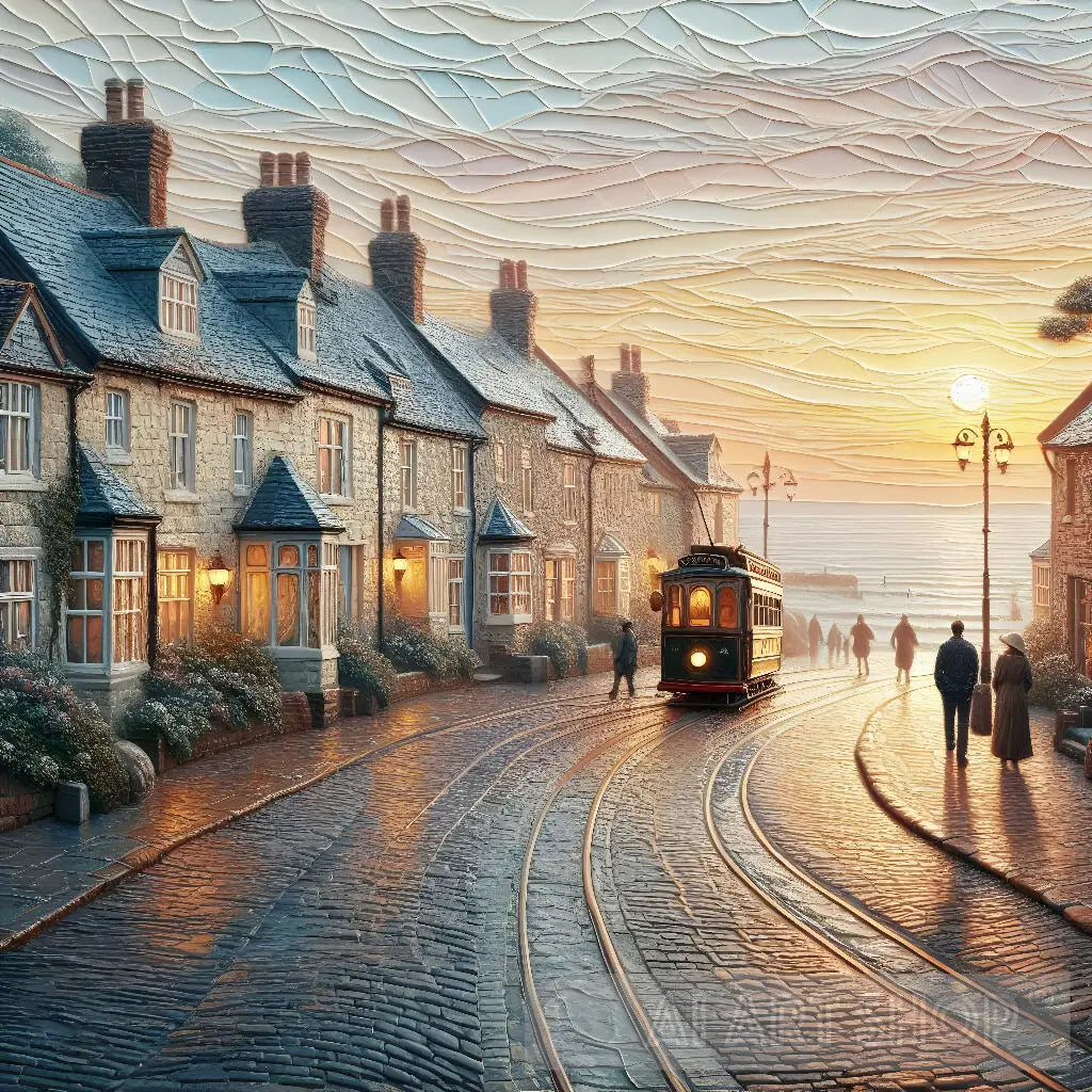 The "Little Town At Sunset" wall painting depicts a picturesque scene of a quaint town nestled amidst rolling hills, bathed in the warm glow of the setting sun. This captivating artwork captures the serenity and charm of small-town life, evoking a sense of nostalgia and tranquility.