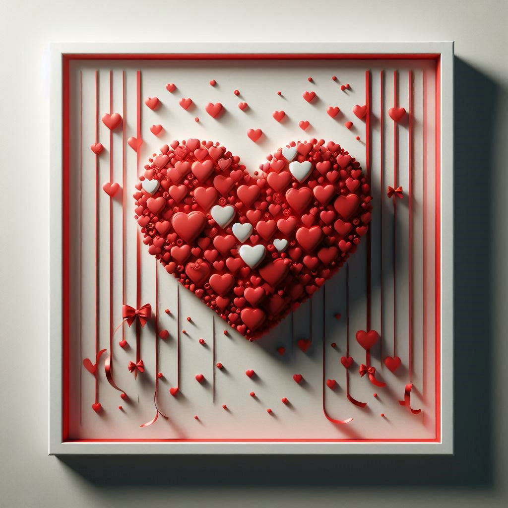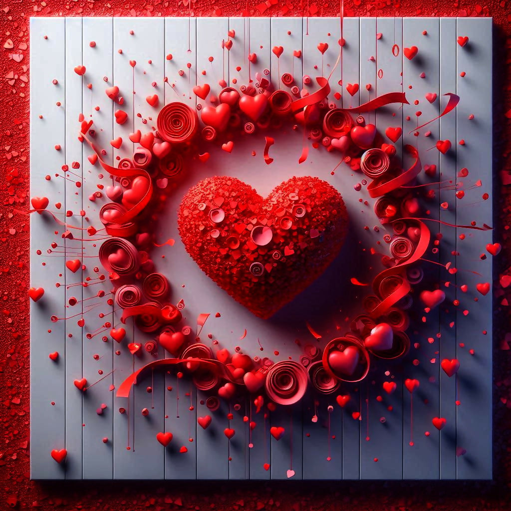 Inspiring AI Art works for love. Hearts for Weddings and Valentine decorations.