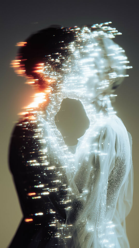 Keywords: surreal light art, AI surrealism, glowing figure, ethereal artwork, luminous painting, modern wall decor, meditative art, digital surrealism.