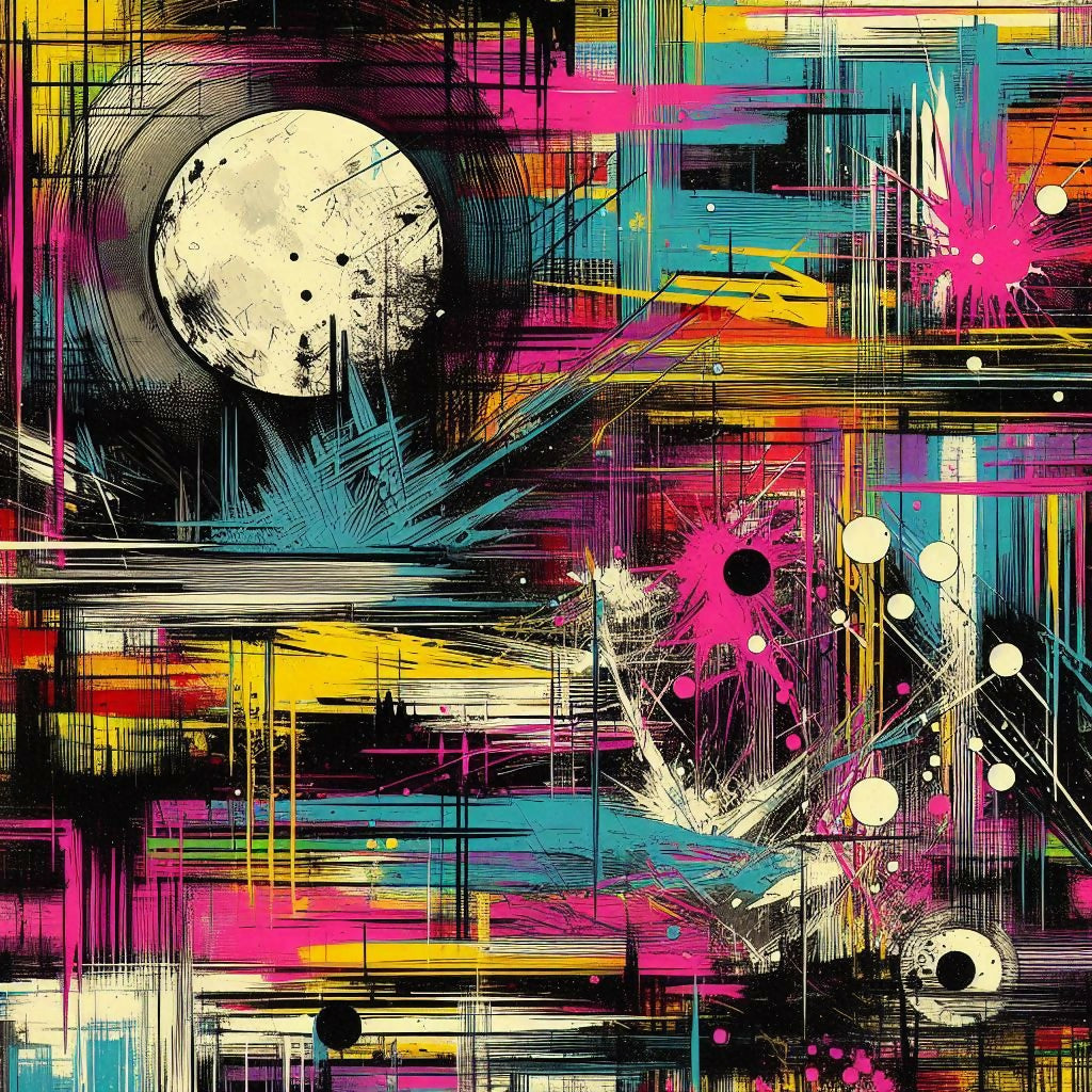 "In 'Lunar Awakening,' I blend abstract expressionism with lunar imagery to create a vibrant, chaotic composition that reflects the emotional complexity of our world. By combining bold colors with darker tones, I aim to evoke a sense of hope and resilience in the face of adversity, inspiring viewers to reflect on the power of compassion and kindness."