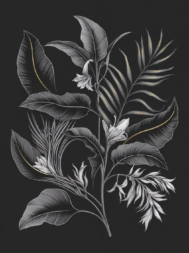 Transform your space with this stunning Luxurious Botanical Monochrome Illustration with Gold Accents. This exquisite artwork blends timeless design with contemporary elegance, offering an exceptional addition to any room.