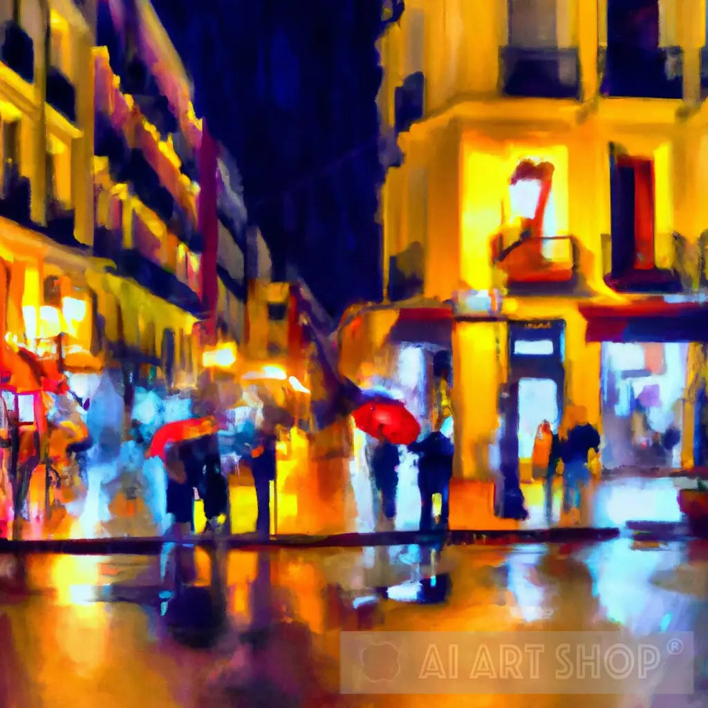 The streets of Madrid come alive at night as the bright lights and bustling crowds create a vibrant energy.