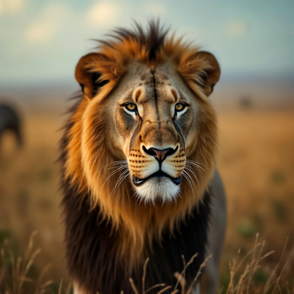 African Male Lion roaming Savannah in his glorious beauty