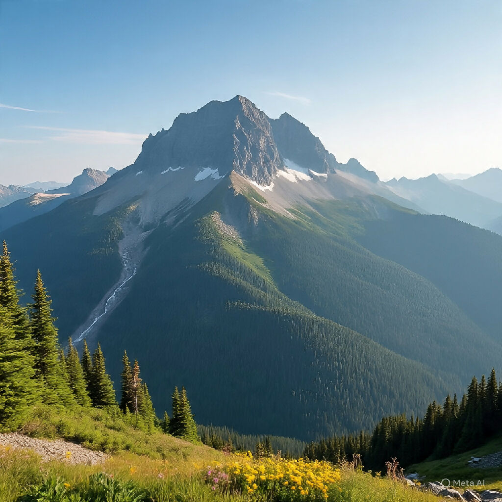 Bring the serenity of nature into your home with this breathtaking majestic mountain landscape. Featuring towering peaks, lush green forests, and a touch of vibrant wildflowers in the foreground, this artwork captures the essence of untouched wilderness. Perfect for adding a calming, adventurous vibe to your living room, bedroom, office, or studio.