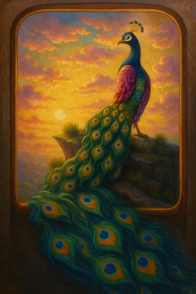 Step into a world of elegance with this high-resolution digital oil painting of a regal peacock gazing into a dreamy sunset. Richly detailed and vibrant, the artwork features intricate feather textures, warm glowing skies, and a surreal blend of realism and fantasy. The peacock’s iridescent tail gracefully cascades over rocky terrain, symbolizing pride, beauty, and timeless grace. Perfect for wall décor, NFT art collectors, or digital downloads, this piece adds sophistication to any space or gallery.
