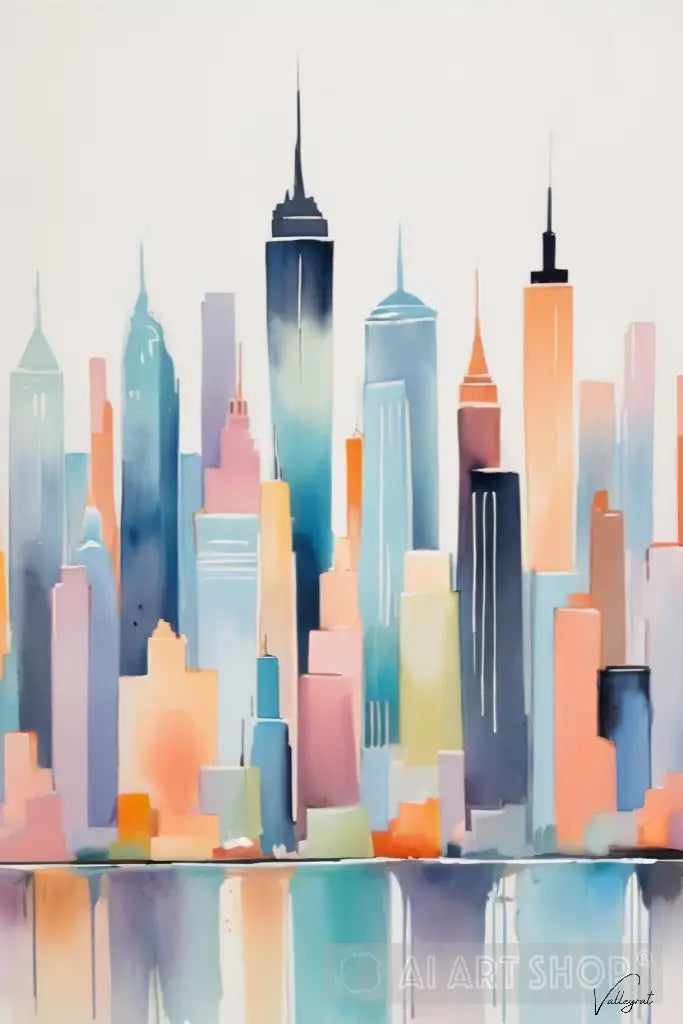 Within the ethereal strokes of pastel pinks and blues, the Manhattan skyline unfurls in abstract grace. Each line and corner whispers the tale of a city that never sleeps, a symphony of steel and dreams. Amidst soft hues, skyscrapers rise like giants, their silhouettes dancing against the canvas of dawn or dusk. The pastels evoke a sense of serenity, a tranquil contrast to the bustling metropolis they portray. It's a visual poem of urban elegance, where the vibrant energy of New York City is distilled into gentle shades, inviting contemplation and wonder in equal measure.