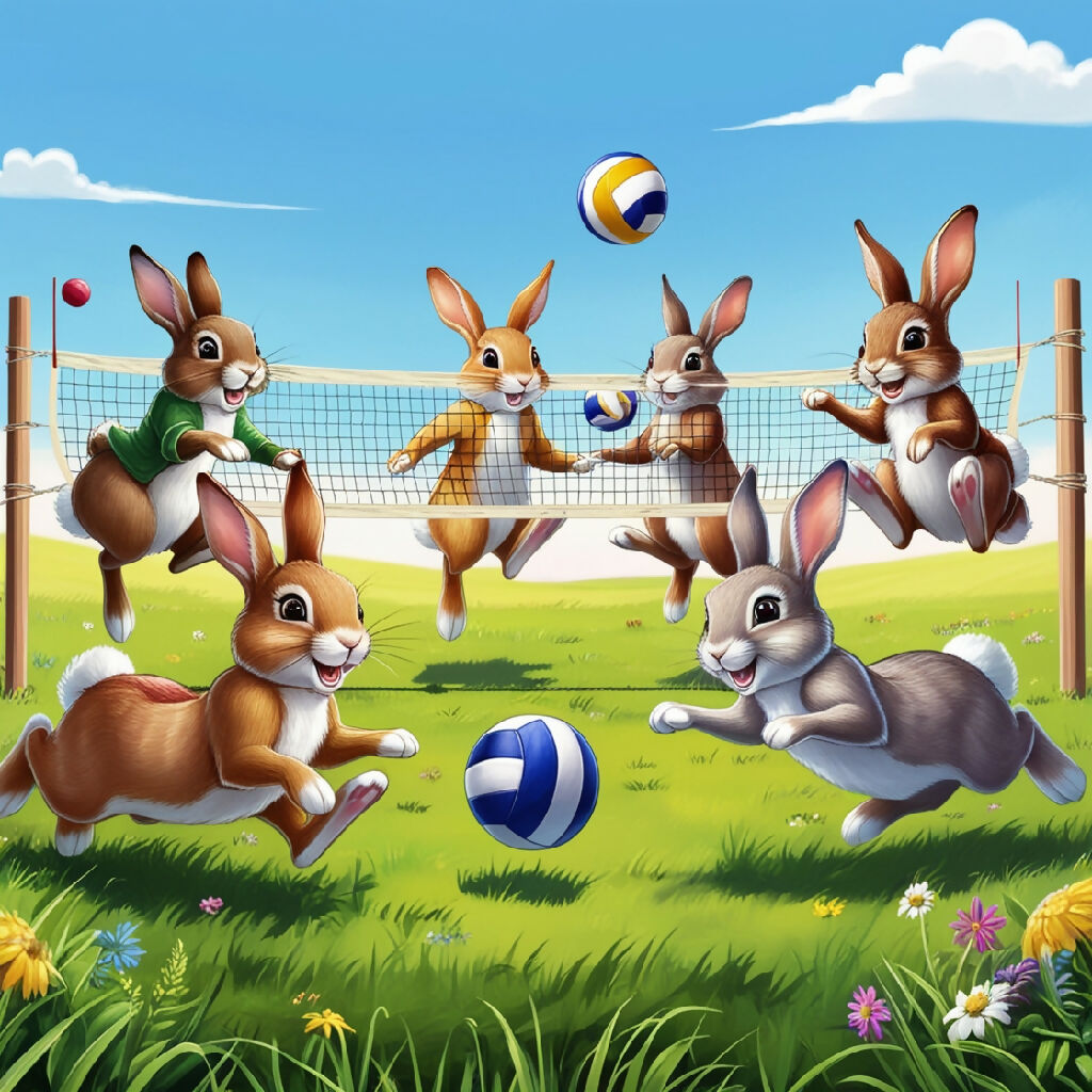 Bring joy and energy to your space with 'Meadow Match: Rabbits in Action.' This vibrant digital illustration captures a group of playful rabbits engaged in an exciting game of volleyball in a sunny, flower-filled meadow. With vivid colors and delightful details, the artwork showcases the rabbits' agility and camaraderie against a backdrop of lush greenery and a clear blue sky. Perfect for animal lovers, sports enthusiasts, and anyone seeking a whimsical touch to their home decor, this charming piece is a delightful addition to any collection. Ideal for gifts or personal enjoyment, let these spirited rabbits bring a smile to your face every day.