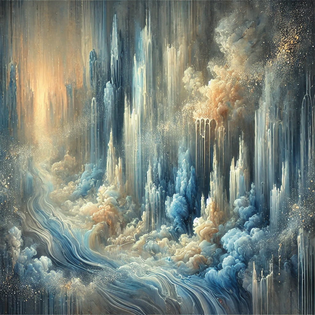 Immerse yourself in the hauntingly beautiful essence of Melancholy Mirage. This abstract expressionist masterpiece portrays an ethereal dreamscape with muted blues, earthy grays, and golden accents cascading through a surreal forest dissolving into delicate, fluid forms. The textured brushwork gives the illusion of fading memories and lost serenity, creating a thought-provoking visual symphony. The elegant interplay of organic shapes and luminous highlights invites viewers into a timeless journey through emotions and imagination. Perfect for art collectors and enthusiasts of abstract expressionism, this artwork captivates with its sophisticated yet enigmatic charm.