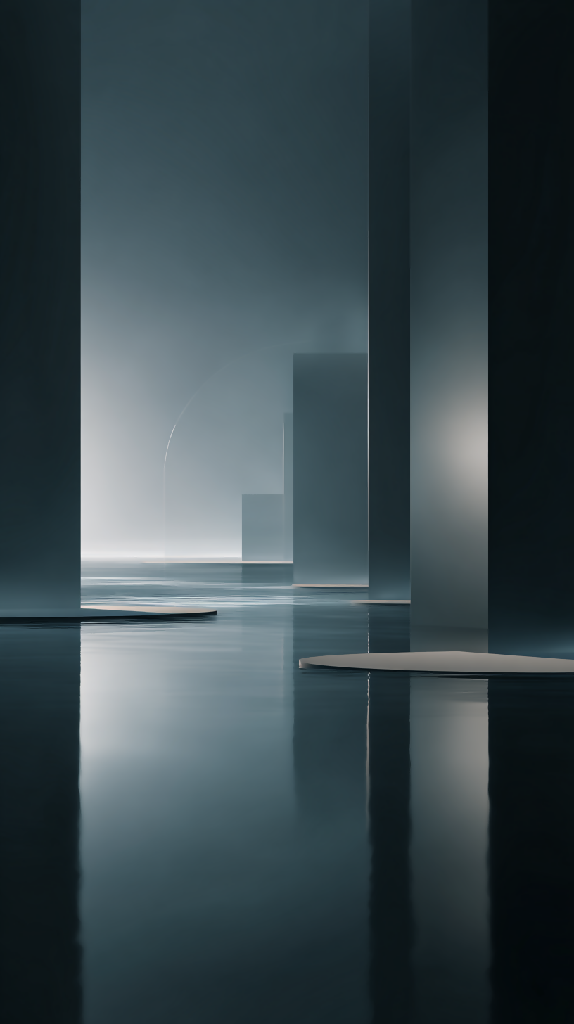 Style: abstract digital art, minimalism, geometric composition, architectural surrealism, contemplative design
