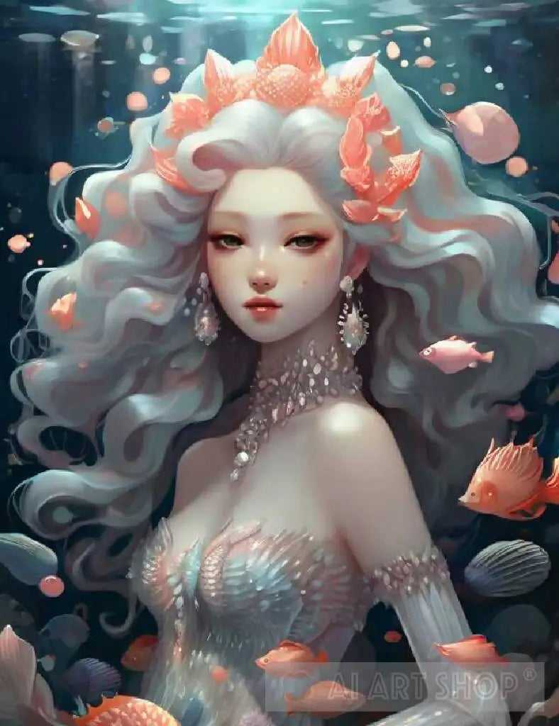 Mermaid princess portrait, Street AI Art, Pop AI Art, Still Life AI Art, Portrait AI Art, Landscape AI Art, Surrealism AI Art, Expressionism AI Art, Impressionism AI Art, Abstract AI Art, Modern AI Art, Contemporary AI Art, AI Artwork, Nature AI Art