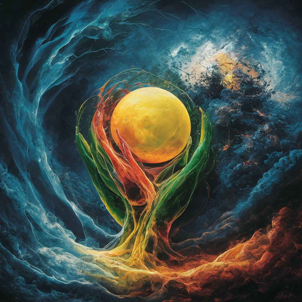 A vivid abstract painting portraying the power of the mind over matter, with swirls of deep blue hues representing the subconscious mind