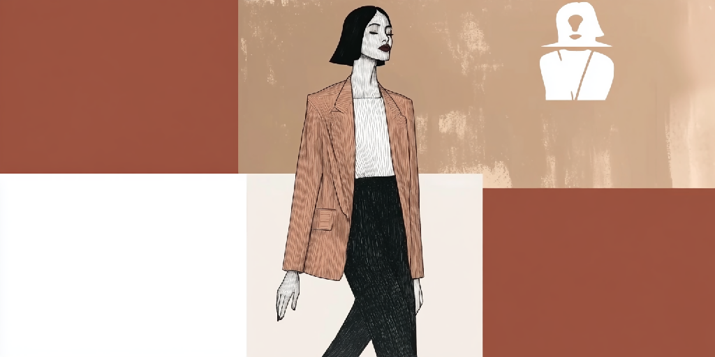 Textured rust and nude tones build a backdrop of quiet tension, while the sharp silhouette and closed eyes suggest power in stillness.