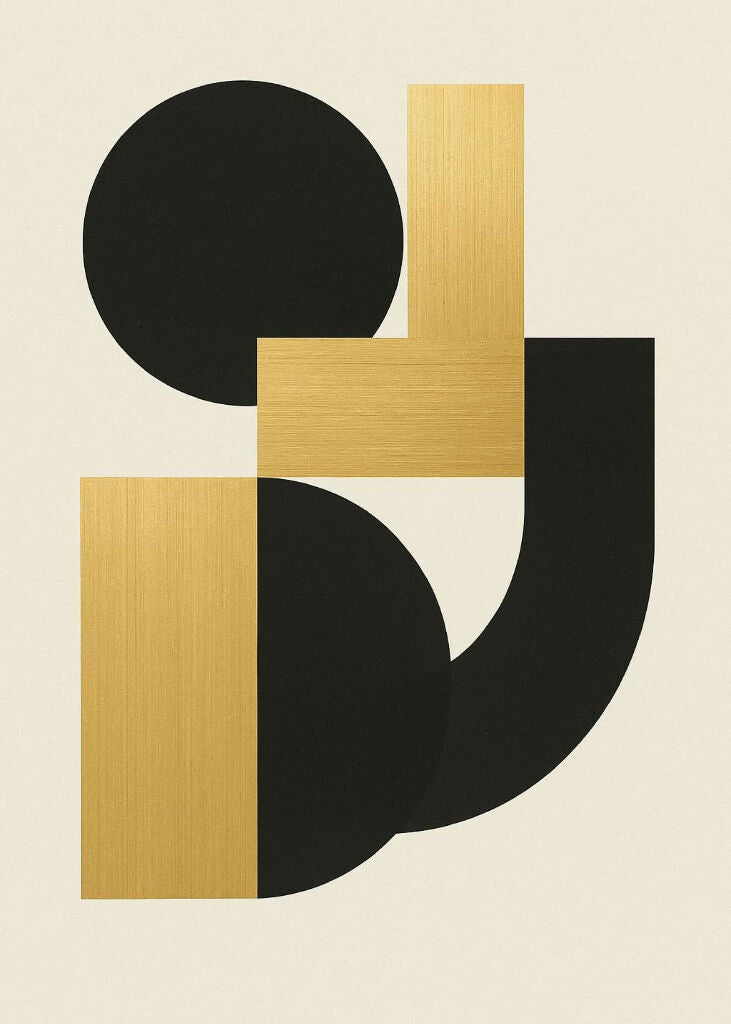 Minimalist geometric wall print in black and gold. Elegant, modern abstract art for corporate offices, living rooms, and product backgrounds. Available in canvas, framed prints, and royalty-free stock downloads.