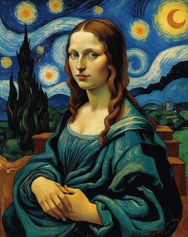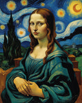 Mona Lisa Starry Night Print - Da Vinci Van Gogh Fusion Art