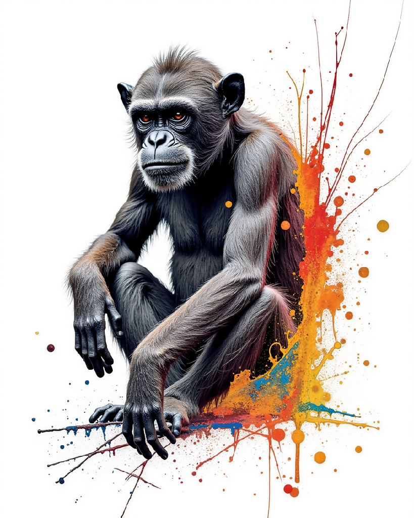 Image alluding to the species of the apes. Black color with colored dyes at its base. Dynamism and elegance at the same time.