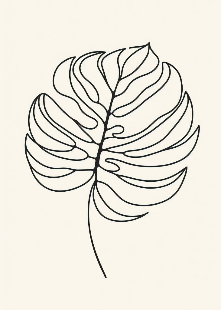 Monstera Leaf Line Art - Minimalist Botanical Wall Print