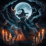 Step into a world of mystical wonder with our "Moonlit Enchantress" digital art print! This captivating piece showcases a powerful witch in her element, surrounded by the magic of a full moon night.
