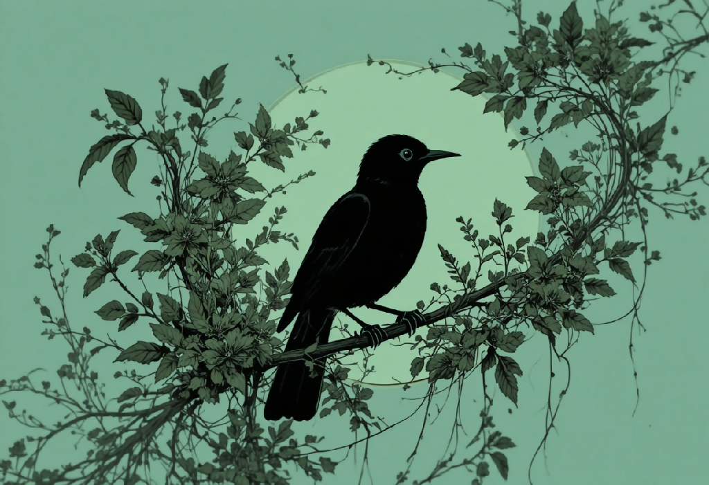 🌿✨ It evokes the quiet strength of the bird, the mystery of the moonlight, and the layered storytelling in your foliage work. If you'd like variations—more mythic, minimalist, or emotionally resonant—I can spin a few more. Want to lean into a specific virtue or feeling for this one?