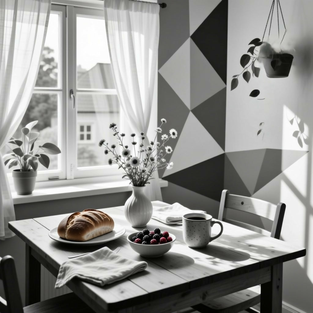 Morning Reverie transforms the simple act of breakfast into an intimate work of art. Rendered in Analytical Cubism, the familiar warmth of bread, coffee, and flowers is reimagined through geometric precision and fragmented planes of light. Sunbeams slice across the minimalist Scandinavian setting, revealing hidden depth in everyday ritual. Both serene and intellectually stimulating, this one-of-a-kind piece invites the collector to pause, breathe, and find beauty in the stillness of morning. Exclusive single edition by The Future of Art.