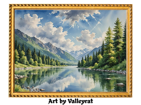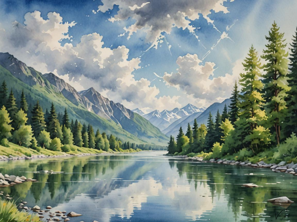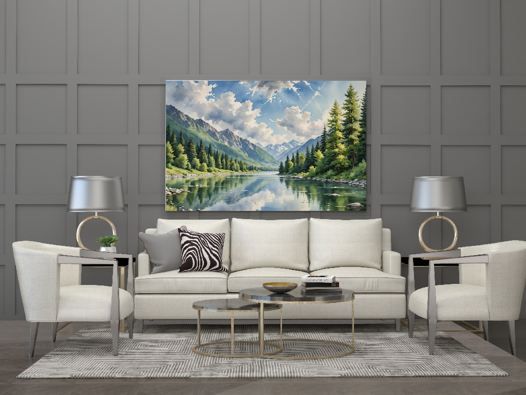 Mountain River Summer Rustic Watercolor Painting Wilderness Art Print Lake House Wall Art Print Mountain Cabin Décor Forest River Painting