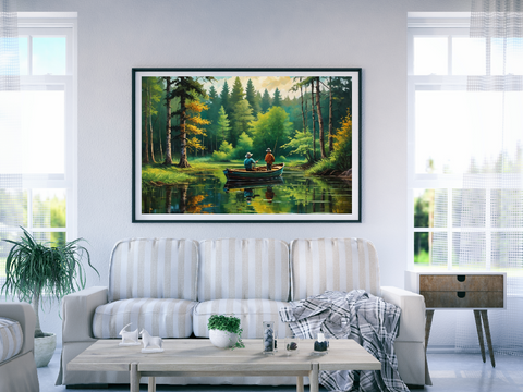Mountain River Summer Rustic Watercolor Painting Wilderness Art Print Lake House Wall Art Print Mountain Cabin Décor Forest River Painting
